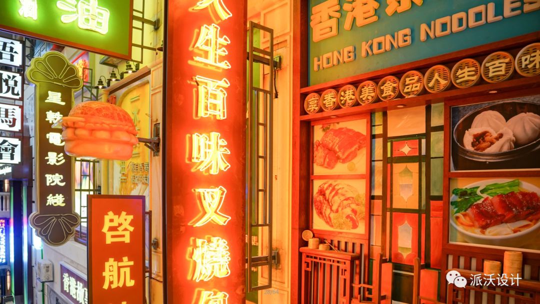 说到香港商业街,第一想到的就是密集又大小不一的侧招,这些侧招大多是双面发光的灯箱广告牌,在夜幕降临后,闪起的霓虹便承载着香港夜市的热闹。