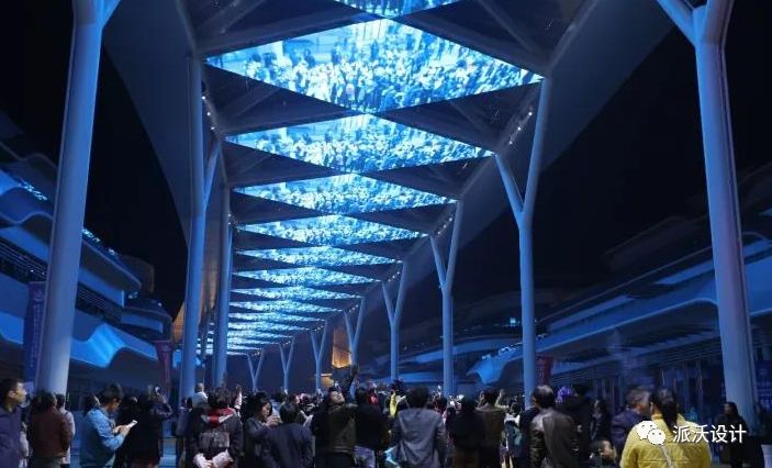 在开放的当天,天幕商业街以其美轮美奂的异形天幕、内容丰富的商品展览吸引近万名游客前来参观。夜幕下的天幕商业街,灯光璀璨,整个天幕宛如龙行宇宙之间,从时空塔眺望银河带,夜晚的天幕街如同浩瀚宇宙中星光闪耀的神秘银河。